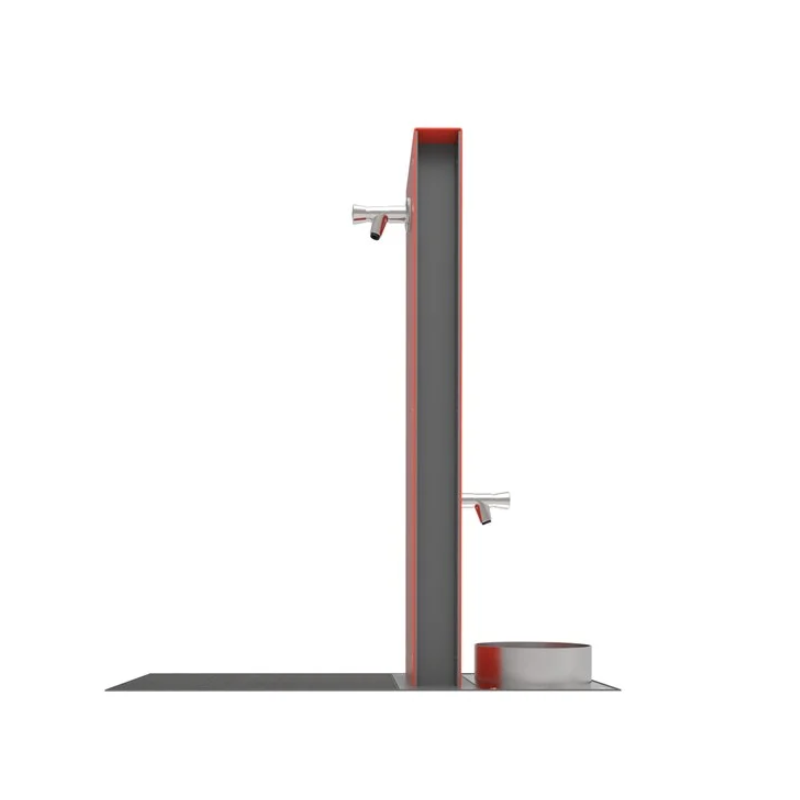 Stačiakampio formos vandens kolonėlė su dviem čiaupais ir stacionariu dubenėliu,…