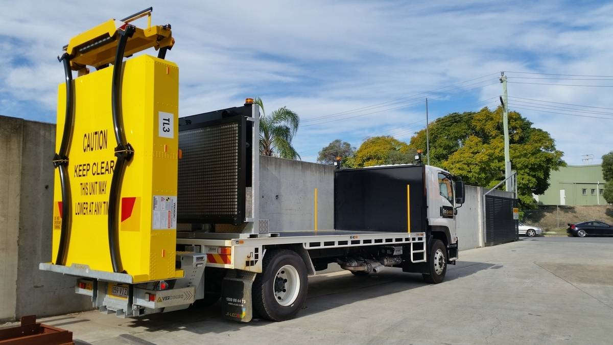 Sukurtas specialiai kelio darbus atliekančių mechanizmų ir transporto priemonių apsaugai greitkeliuose.