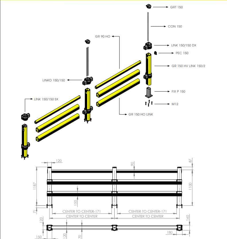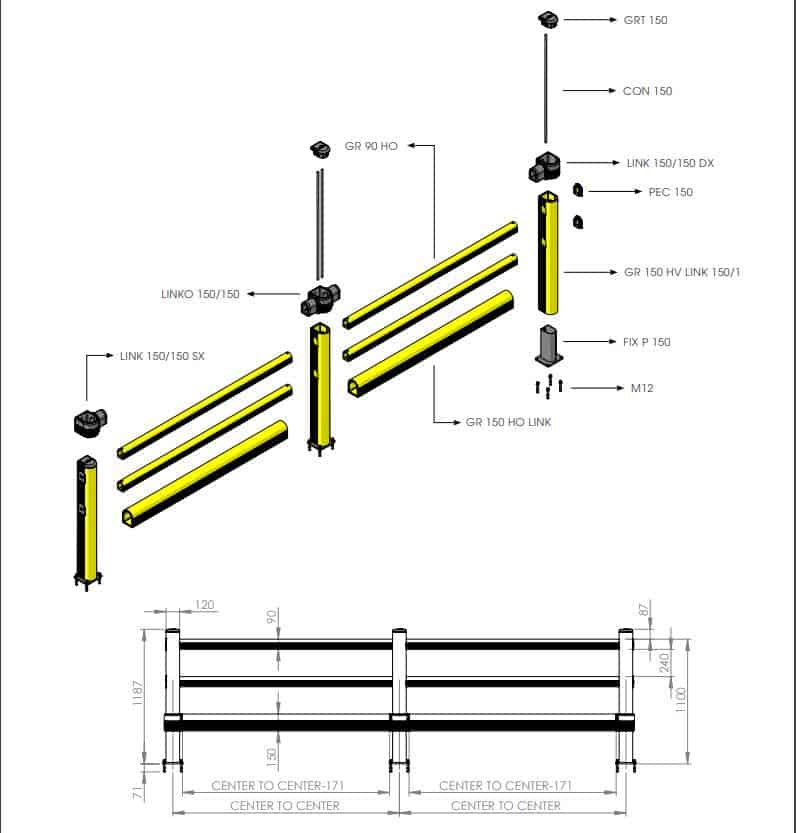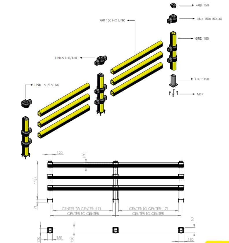 Apsauginiai atitvarai PEDESTRIAN su trigubais barjerais skirtas naudoti sandėliuose, kuriuose vyksta autokrautuvų judėjimas. Galimas profilių ilgis 2000mm. Komplekte pridedami tvirtinimo reikmenys.