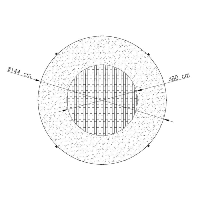Batuto konstrukcijos skersmuo: Ø 144 cm