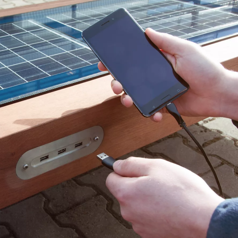 Plieninės konstrukcijos lauko suoliukas su medine apdaila ir sėdynėje integruotomis fotovoltinėmis plokštėmis, kurių dėka įrenginiai aprūpinami autonomiška ir atsinaujinančia elektros energija. Bazinėje komplektacijoje suoliukas turi  3 A tipo USB įkrovimo prievadus ir LED apšvietimą, kuris automatiškai įsijungia sutemus. Pagal poreikį, papildomai gali būti įrengtas bevielis įkroviklis, Wi-Fi prieigos taškas, Bluetooth garsiakalbis ir muzikos modulis su įrašyta muzika, leidžiama paspaudus ant suoliuko esančius mygtukus.