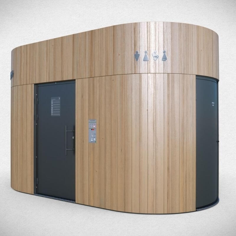 Modernaus dizaino dvivietis automatinis lauko tualetas – inovacijų, estetikos ir funkcionalumo derinys šiuolaikinėms viešosioms erdvėms. Vidinės tualeto konstrukcijos ir aksesuarai pagaminti iš tvirtų ir saugių medžiagų, todėl patalpą lengva valyti ir dezinfekuoti. Automatiniai sanitariniai sprendimai, tokie, kaip vandens nuleidimo sistema, muilo ir popieriaus dalytuvai, sumažina kontaktą su paviršiais ir bakterijomis.