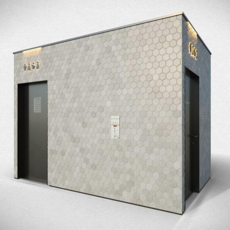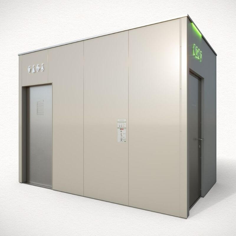 Minimalistinio dizaino, erdvus vienvietis automatinis lauko tualetas. Automatinės funkcijos – vandens tekėjimo sistemos, muilo ir popieriaus dalytuvai – minimizuoja kontaktą su paviršiais ir sumažina bakterijų perdavimo riziką. Vidinės tualeto konstrukcijos ir aksesuarai pagaminti iš tvirtų ir saugių medžiagų, todėl patalpą lengva valyti ir dezinfekuoti.