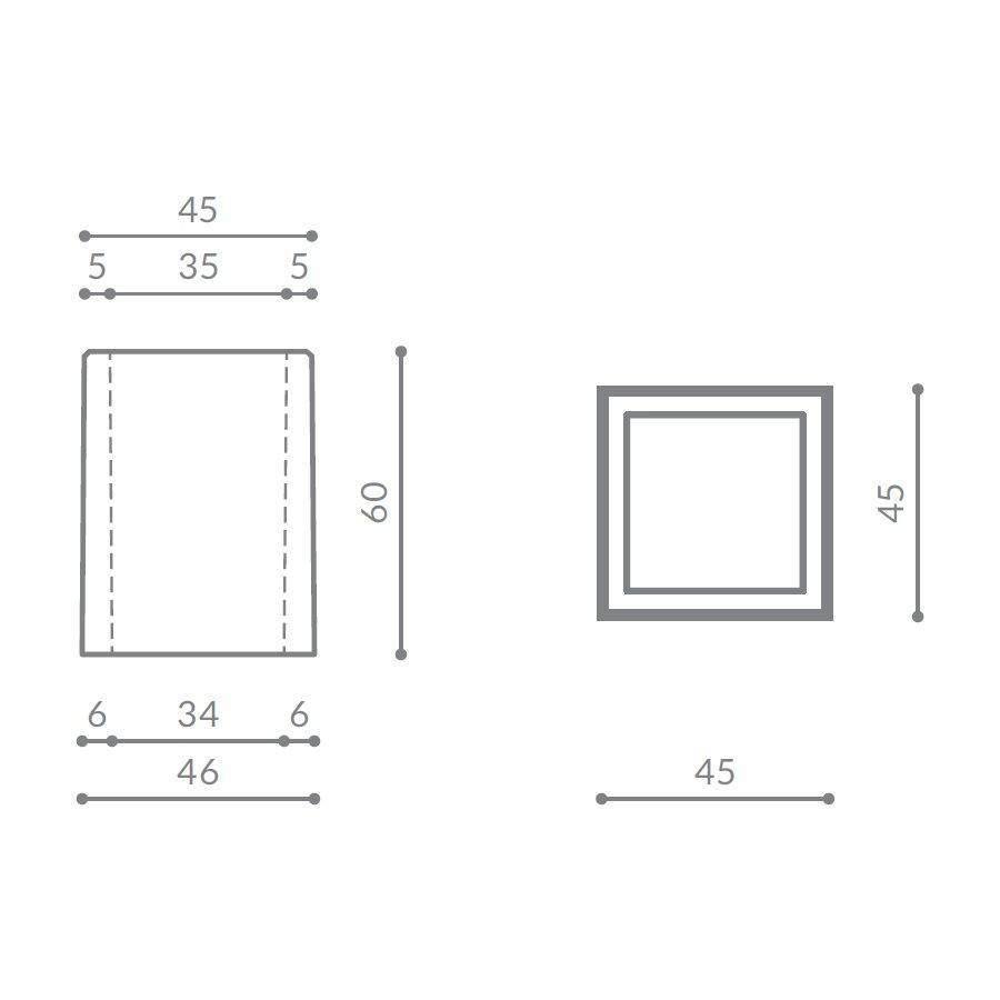 Šiukšliadėžė pagaminta iš min. C 40 klasės betono su natūralaus granito 2-5mm frakcijos skaldelės apdaila. Skaldelė yra ne klijuota ant betoninio paviršiaus, o įliejama į visą gaminio struktūrą gamybos proceso metu. Tai užtikrina ilgaamžiškumą ir apsaugo skaldelę nuo byrėjimo eksploatacijos metu ar nuo minimalaus mechaninio poveikio.