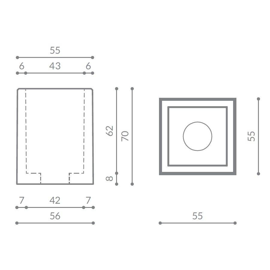 Šiukšliadėžė pagaminta iš min. C 40 klasės betono su natūralaus granito 2-5mm frakcijos skaldelės apdaila. Skaldelė yra ne klijuota ant betoninio paviršiaus, o įliejama į visą gaminio struktūrą gamybos proceso metu. Tai užtikrina ilgaamžiškumą ir apsaugo skaldelę nuo byrėjimo eksploatacijos metu ar nuo minimalaus mechaninio poveikio.