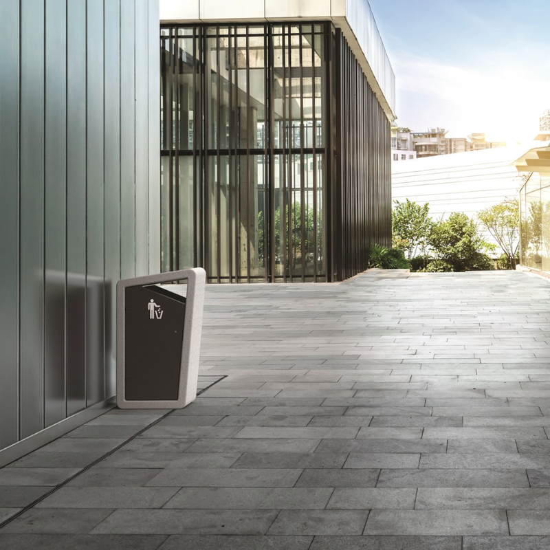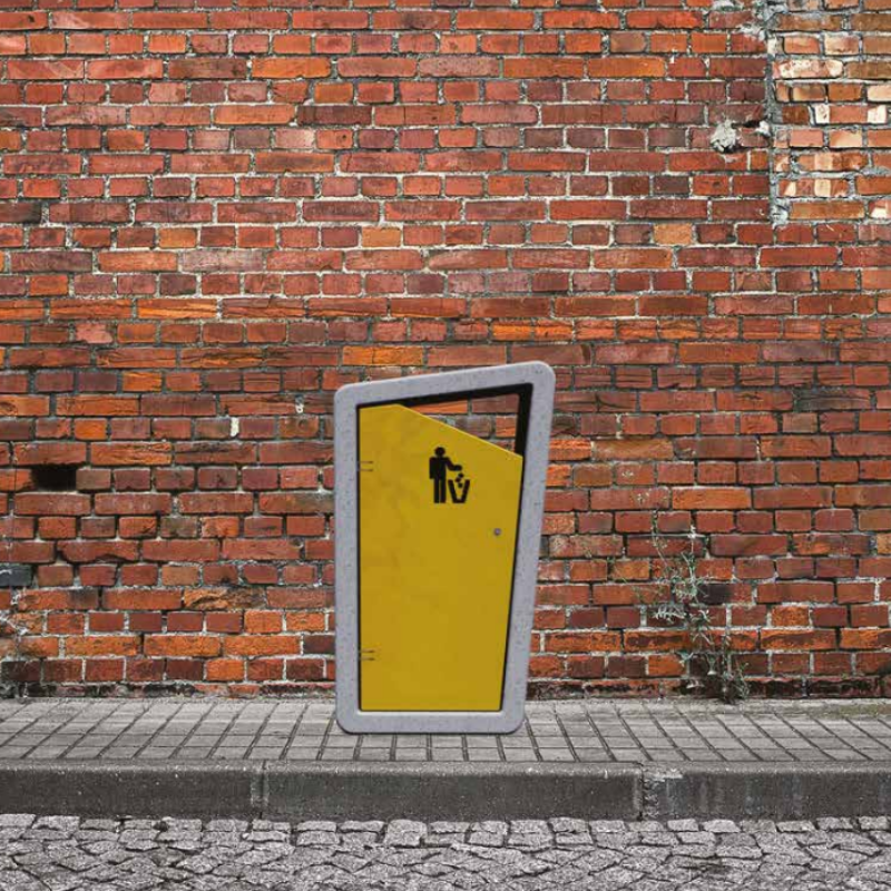 Netaisyklingos trapecijos formos monolitinė šiukšliadėžė, pasižyminti patvarumu ir aukšto lygio apsauga nuo lietaus, vėjo ar laukinių paukščių, dėl ko užtikrinanti didesnę švarą viešose vietose. Galima montuoti po vieną arba derinti kelias ir formuoti šiukšliadėžes atliekų rūšiavimui.