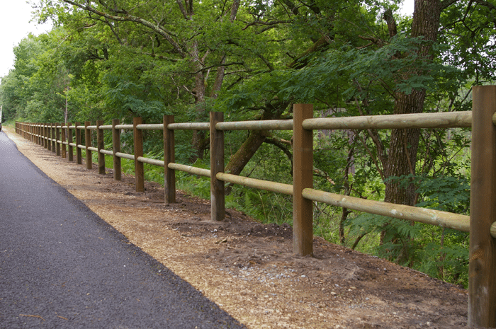 Medžio ir plieno kompozitas – ekologiškos medžiagos suteikia natūralią dviračių takų atitvarų išvaizdą.