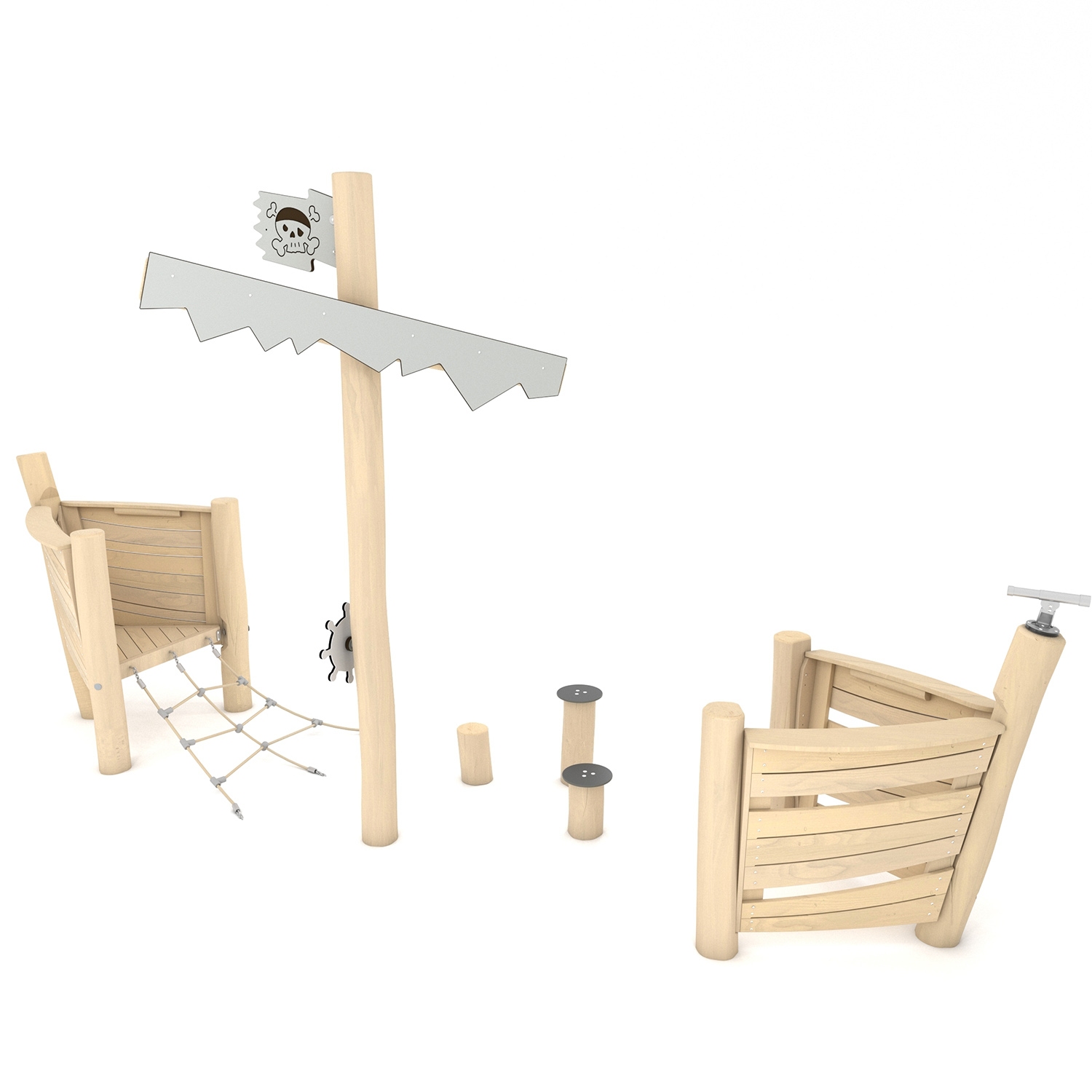 • Pagrindinė žaidimų komplekso konstrukcija pagaminta iš Robinijos – patvarios akacijos medienos (skersmuo ~ 18 cm), atsparios įvairioms oro sąlygoms;
