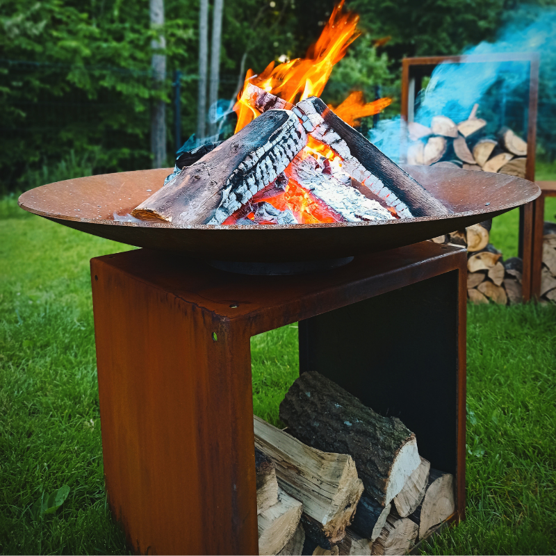 Modernaus dizaino aukuras, pagamintas iš corten plieno, su atskira niša malkoms, pasižymi estetika ir funkcionalumu. Integruota malkinė padės sutaupyti vietos, o lengvai nuimama aukuro lėkštė neapsunkins valymo proceso. Dėl kompaktiškos konstrukcijos ugniakuras gali būti laisvai kilnojamas ir pritaikomas bet kurioje vietoje.