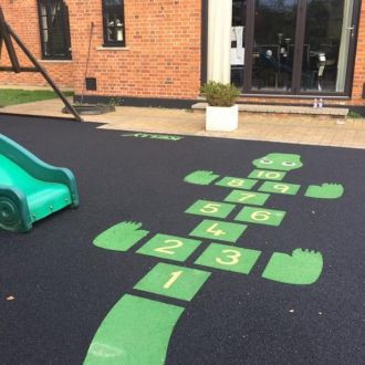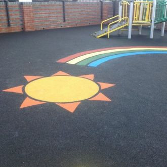 Skatinant vaikų lavinimą, siūlome aikštelėms pasirinkti kelias skirtingas spalvas, formuojant iš jų geometrines figūras, žaidimus, akcentuojant žaidimų įrangos vietas arba tiesiog sukuriant ištisus grafinius piešinius.