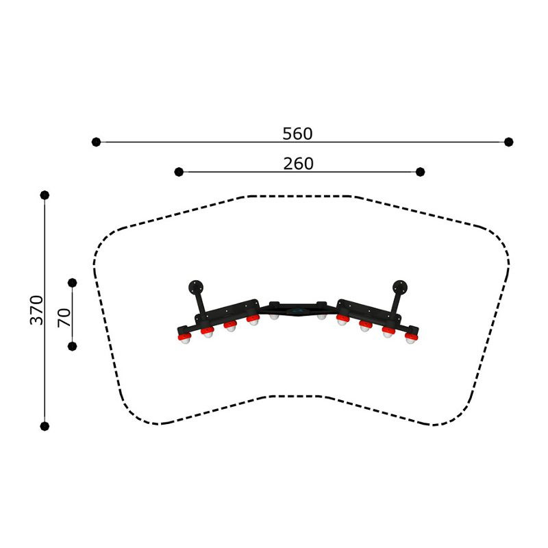 • Saugumo zona: 3,7 x 5,6 m