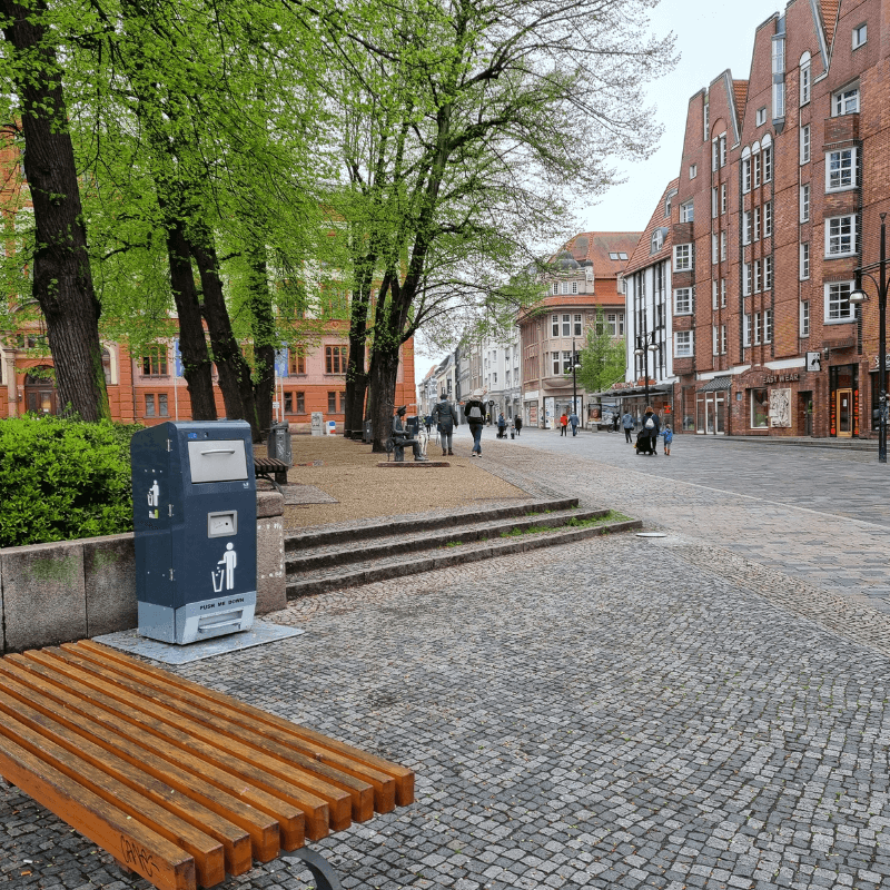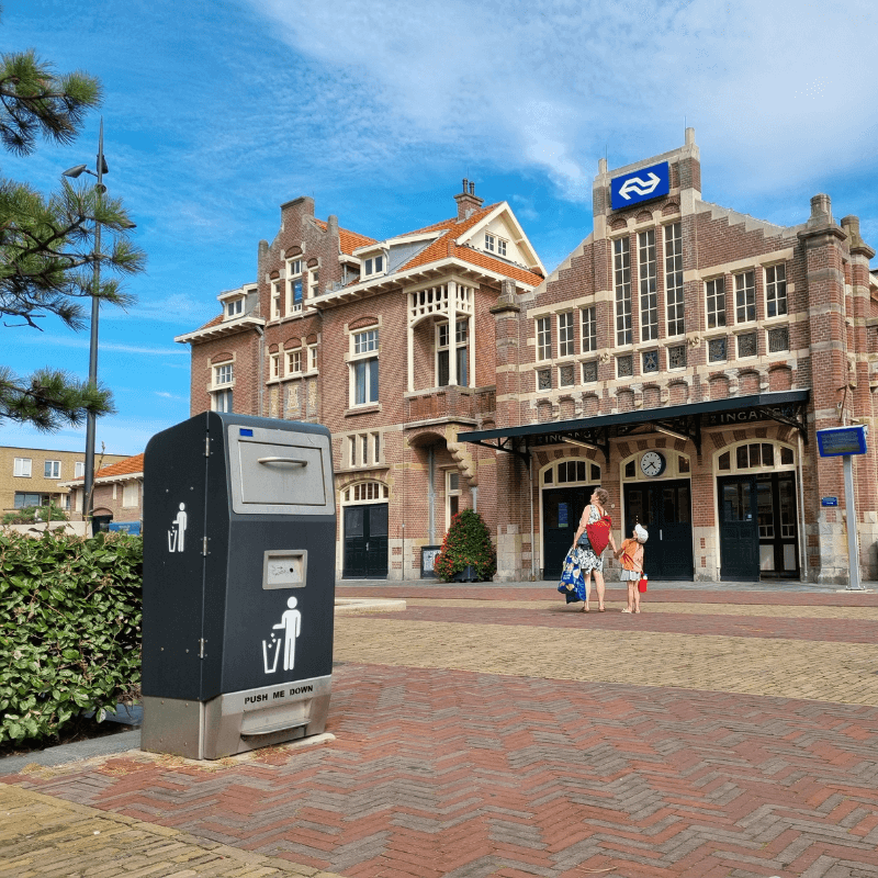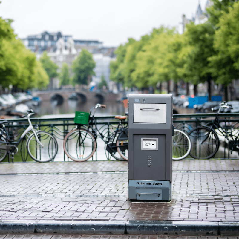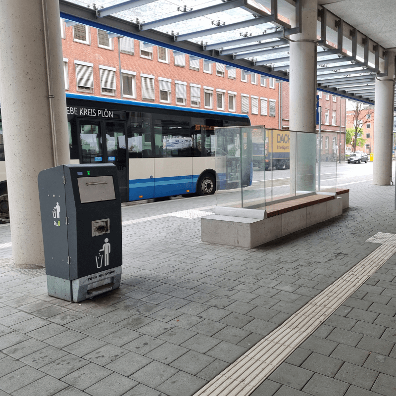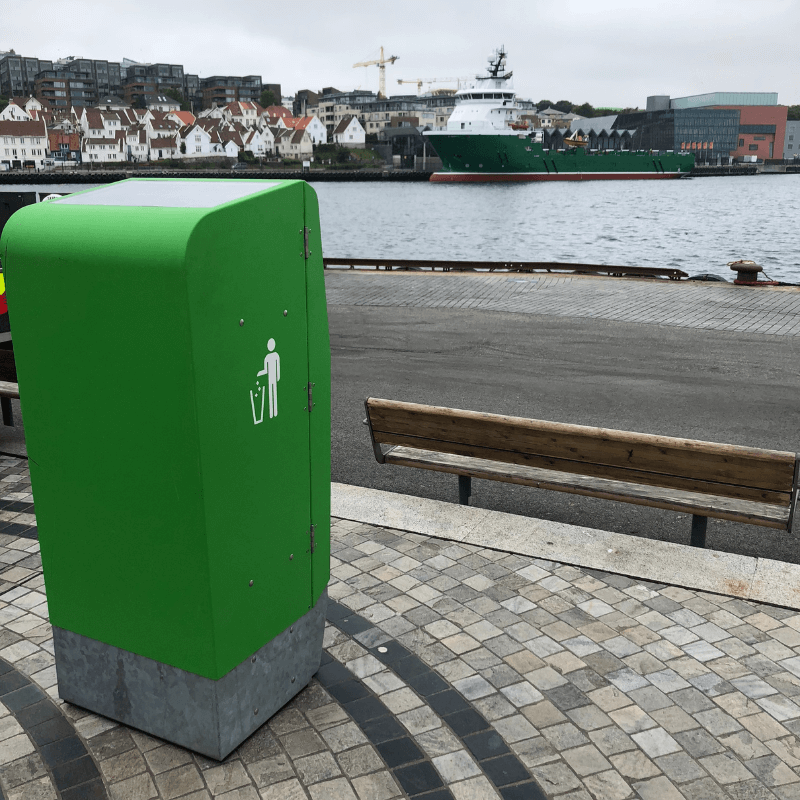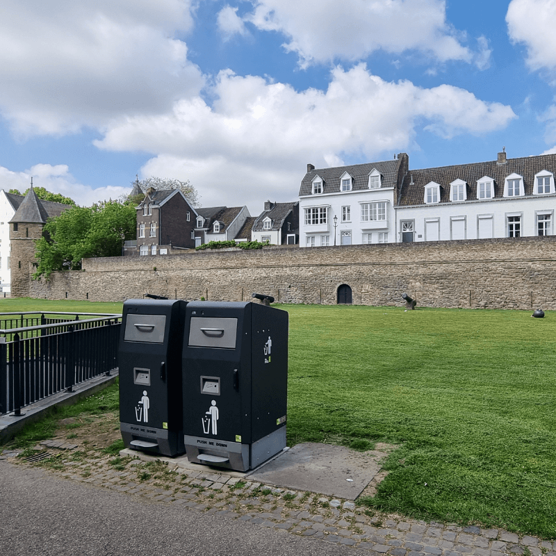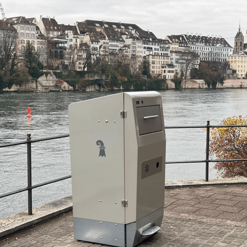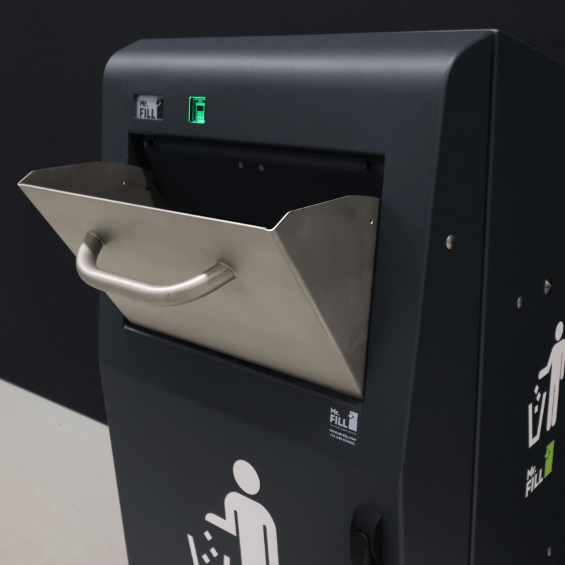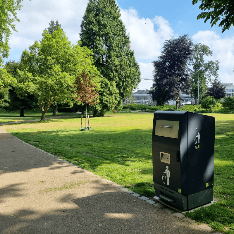 Išmanioji lauko šiukšliadėžė su tūrio jutikliais, leidžianti sutalpinti 5-7 kartus daugiau atliekų, negu įprasta. Įmontuoti tūrio jutikliai visapusiškai įvertina užpildymo lygį, o automatinė presavimo sistema suspaudžia atliekas, taip sukuriant daugiau vietos naujoms.