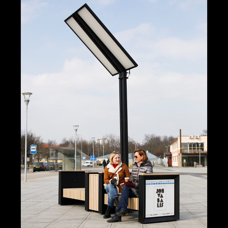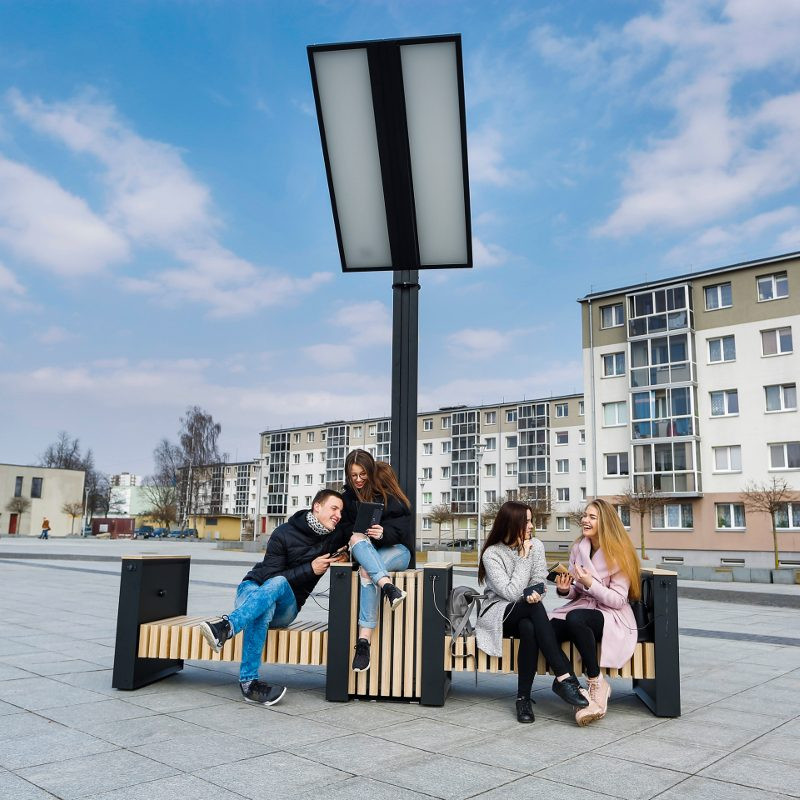 Lauko suoliukas ir paslaugų stotelė, įkraunama saulės energija. Tai dviračių servisas, elektros lizdų prieigos ir kitos išmaniosios paslaugos visuomenės poreikiams. Lietuvoje kuriamas ir gaminamas produktas, skirtas inovatyvių ir tvarių miestų plėtrai.