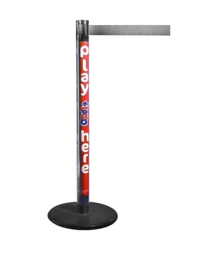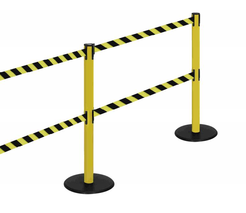 Stulpelių aukštis 980 mm, pagrindo skersmuo 330 mm, juostos ilgis 2 m, plotis 48 mm.