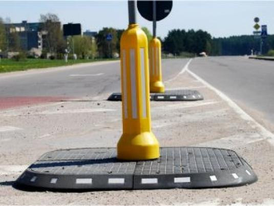Kelių saugumo salelės yra pagamintos iš gumos.