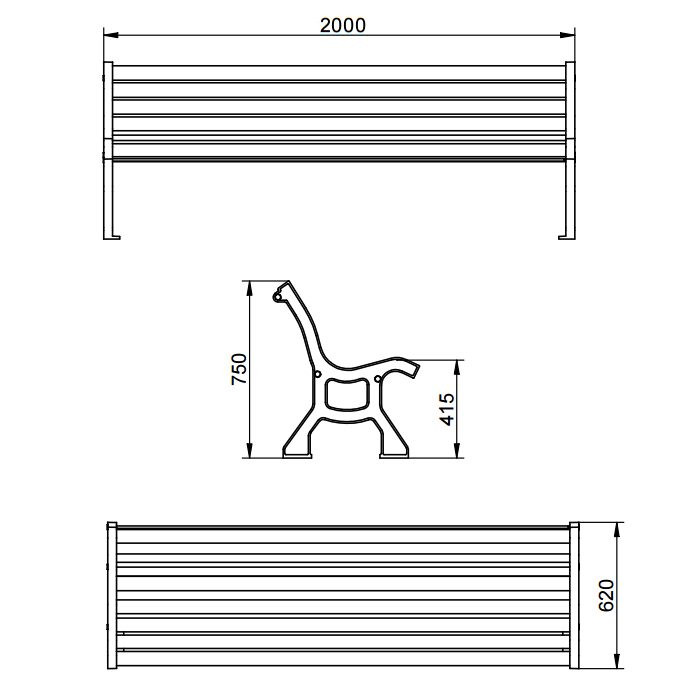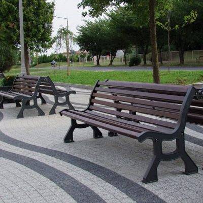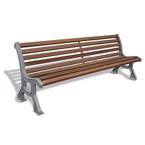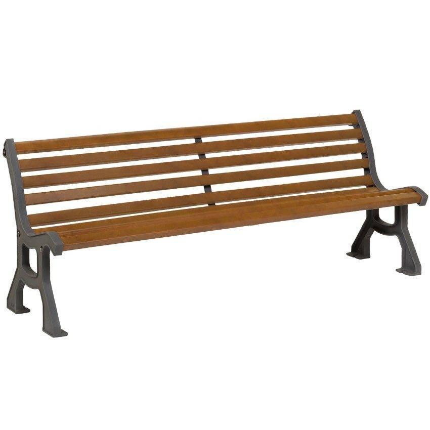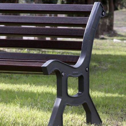 Metalinis lauko suoliukas su lieto ketaus kojomis ir kietmedžio medine dalimi