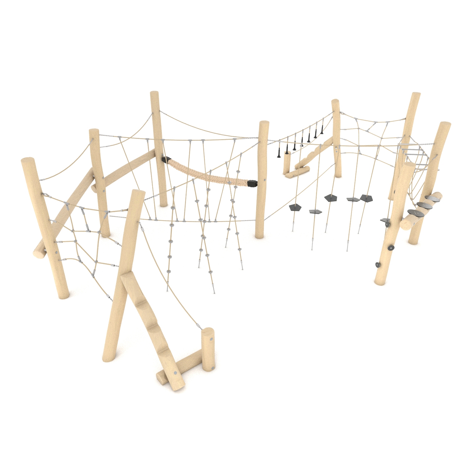 • Pagrindinė žaidimų komplekso konstrukcija pagaminta iš Robinijos – patvarios akacijos medienos (skersmuo ~ 18 cm), atsparios įvairioms oro sąlygoms;