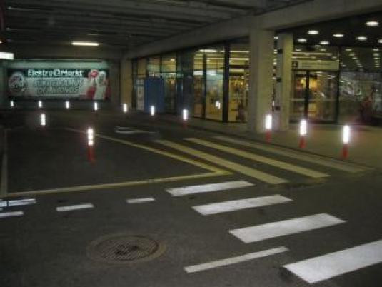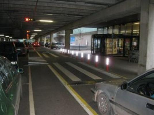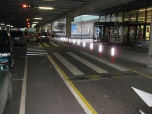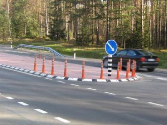 Ryški stulpelių spalva ir šviesą atspindinčios juostos padeda vairuotojams pastebėti stulpelius dieną ir tamsiu paros metu.