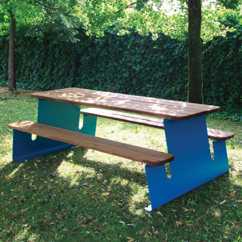 Lauko baldai, sudaryti iš tvirto plieninio rėmo ir kietmedžio stalviršio bei sėdynių. Žaisminga suolų forma ir platus spalvų pasirinkimas leis sukurti išskirtines erdves. Tvirtos medžiagos užtikrina lauko baldų ilgaamžiškumą ir atsparumą aplinkos poveikiui.