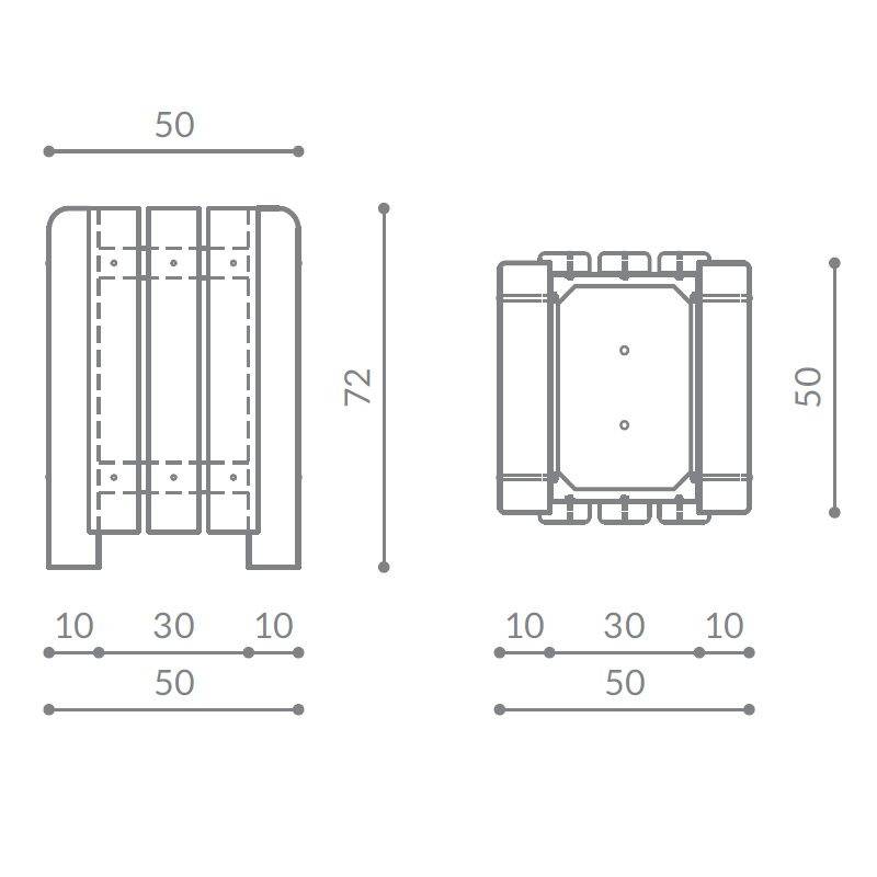 Betoninė dalis pagaminta iš min. C 40 klasės betono su natūralaus granito 2-5mm frakcijos skaldelės apdaila. Skaldelė yra ne klijuota ant betoninio paviršiaus, o įliejama į visą gaminio struktūrą gamybos proceso metu. Tai užtikrina ilgaamžiškumą ir apsaugo skaldelę nuo byrėjimo eksploatacijos metu ar nuo minimalaus mechaninio poveikio.