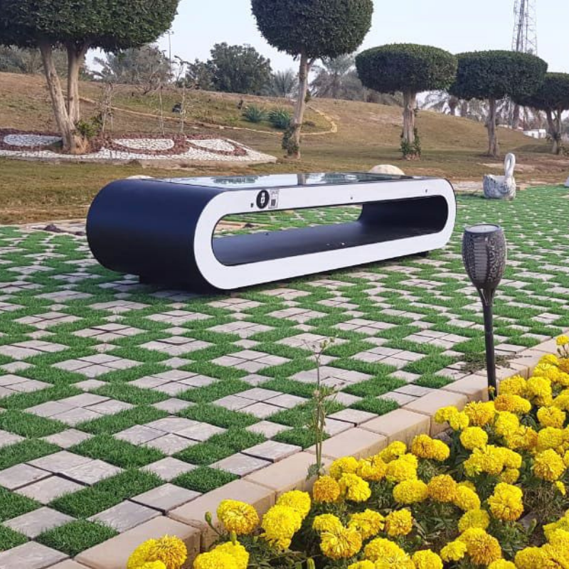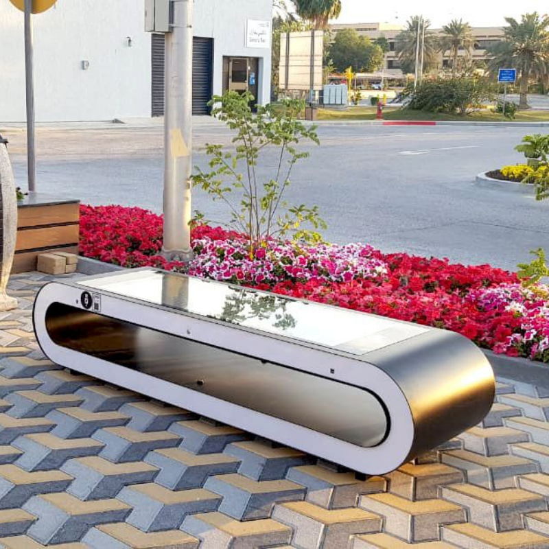 Futuristinio dizaino išmanieji lauko suoliukai puikiai papuoš modernias aikštes ir industrines miesto erdves, o šoninis LED apšvietimas sukurs autentišką atmosferą. Įrenginyje yra 4 USB jungtys ir 2 belaidžio krovimo padai, todėl suoliukas pasitarnaus ne tik norint atgauti jėgas, bet ir įkrauti mobiliuosius įrenginius ar pasinaudoti mobiliąja saitviete. Integruota sensorinė sistema leidžia stebėti tokius rodiklius, kaip oro temperatūra ar taršos lygis. Išmanusis lauko suoliukas pasižymi ne tik moderniu dizainu, bet ir tvarumu, kadangi naudojama tik saulės energija.