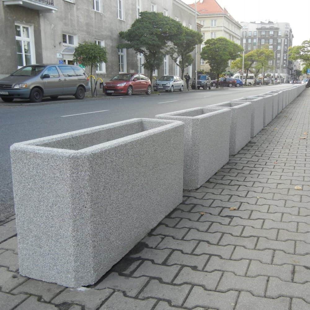 Stačiakampio formos betoninis vazonas aukštomis sienelėmis ir nupjautais kampais. Siauri lauko vazonai pasižymi kompaktiškumu ir plačiu pritaikymu: jie puikiai tiks mažose erdvėse ar pastatų prieigose. Taip pat šie vazonai gali būti eksploatuojami ir kaip kelio stulpeliai, atitveriantys pėsčiųjų zonas.