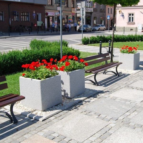 Betoniniai gėlių vazonai su natūralaus granito skaldelės apdaila