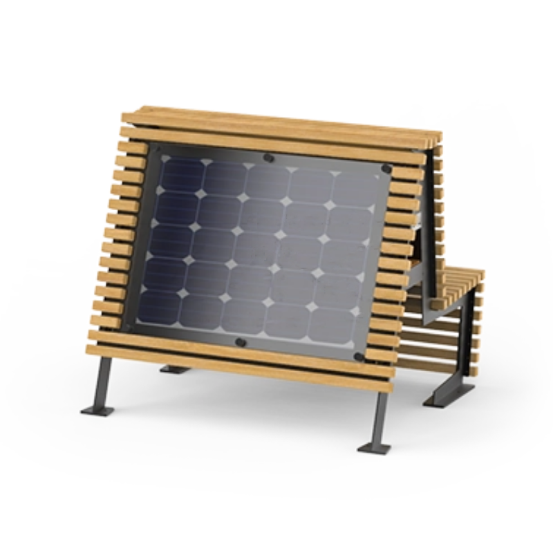 Siauras lauko suoliukas, kurį sudaro plieninė konstrukcija ir medinė sėdimoji dalis su atlošu, pasižymi komfortabilumu, organiškomis medžiagomis ir išmaniomis funkcijomis. Nugarėlėje esanti fotovoltinė plokštė užtikrina autonominę elektros energiją USB prievadams ir bevieliam telefonų krovimo taškui, todėl suoliukas gali būti eksploatuojamas bet kurioje vietoje.