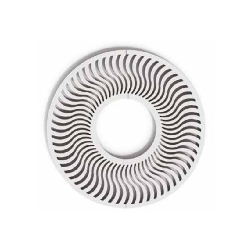 Apskritimo formos medžių šaknų apsaugos, pagamintos iš specialios technologijos betono, su plieniniu pagrindu, leidžiančiu įmontuoti groteles tolygiai su aplinkos paviršiumi. Šaknų apsaugos dekoruotos spindulių imitacijos grioveliais, užtikrinančiais vandens ir oro cirkuliaciją augalo šaknims. Galimas įvairių spalvų pasirinkimas