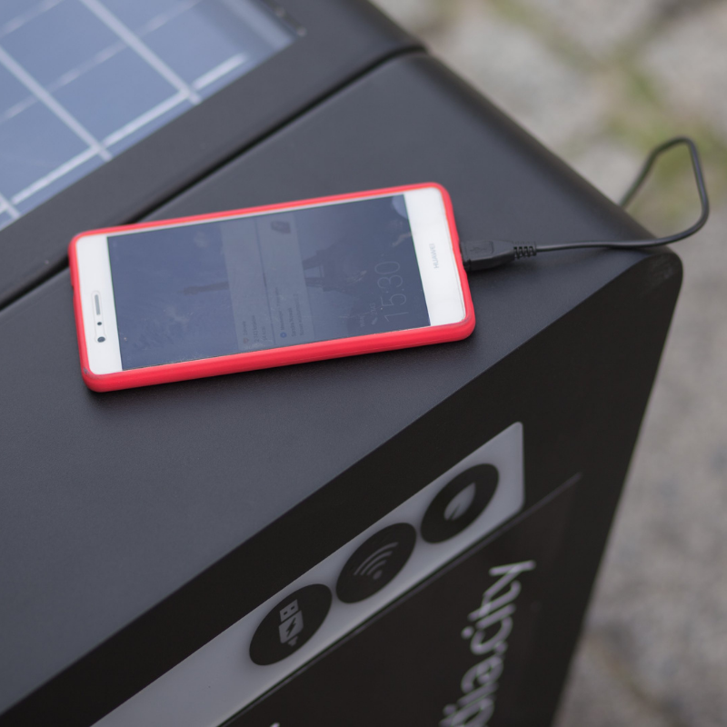 Išmanusis miesto suoliukas-dviračių stovas su Wi-Fi saitviete ir mobiliųjų įrenginių krovikliais. Tai puikus multifunkcinis sprendimas tiek viešajam, tiek privačiam sektoriui, plėtojant atsinaujinančios energetikos ir inovacijų planus.