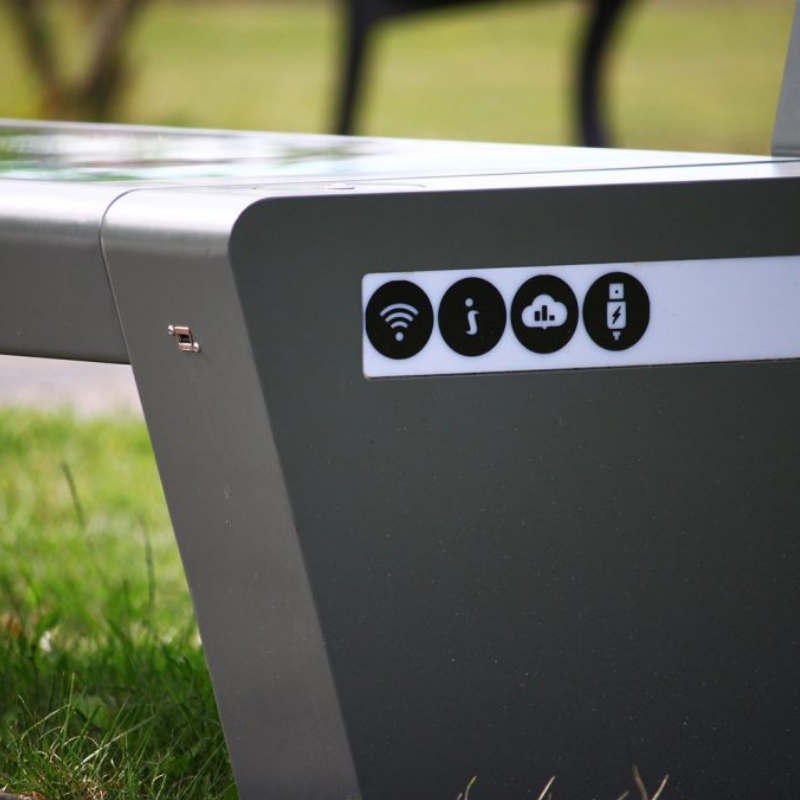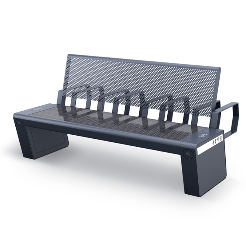 Klasikinio dizaino metalinis suoliukas su išmaniosiomis funkcijomis puikiai atlieps šiuolaikinio miestiečio poreikius. 2 USB jungtys ir 2 belaidžio krovimo padai suteikia galimybę įkrauti mobiliuosius įrenginius 24 val. per parą ir naudotis nemokama Wi-Fi saitviete, o dėl subtilios galinių laikiklių konstrukcijos dviračių parkavimas taps paprastesniu. Taip pat išmanieji lauko suoliukai turi integruotus jutiklius, leidžiančius stebėti tokius rodiklius, kaip oro temperatūra ar taršos lygis. Įrenginiai pagaminti iš konstrukcinio plieno, o saulės moduliai dengti grūdintu stiklu, taip užtikrinant jų ilgaamžiškumą ir apsaugą nuo vandalizmo. Dėl šių savybių išmanieji miesto suoliukai puikiai tiks judriose, dažnai lankomose erdvėse, pavyzdžiui, stotyse, miesto parkuose ar aikštėse.