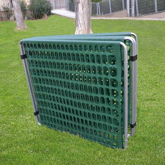 Mobilus plastikinio tinklo užtvaras lengva montuoti, transportuoti ir sandėliuoti.