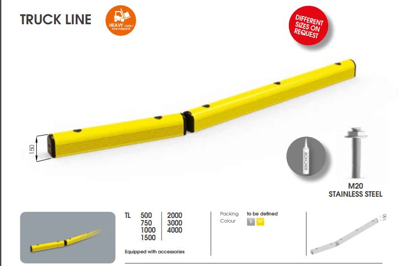Sunkvežimių linijos TRUC LINE skirtos pramonės ir logistikos lauko bazėms, apsaugančios aptarnavimo zonas ir pakrovimo aikšteles. Sunkvežimių linijos leidžia nukreipti transporto priemones link pakrovimo vartų, leidžia išlaikyti vientisumą ir tikslumą besiparkuojančiai transporto priemonei.