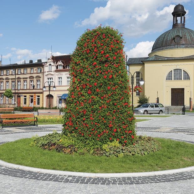 Gėlių piramidės daugiaaukščiuose vazonuose tai puikus sprendimas greitai ir nebrangiai papuošti miestą, prekybos centrą ar viešąsias erdves.