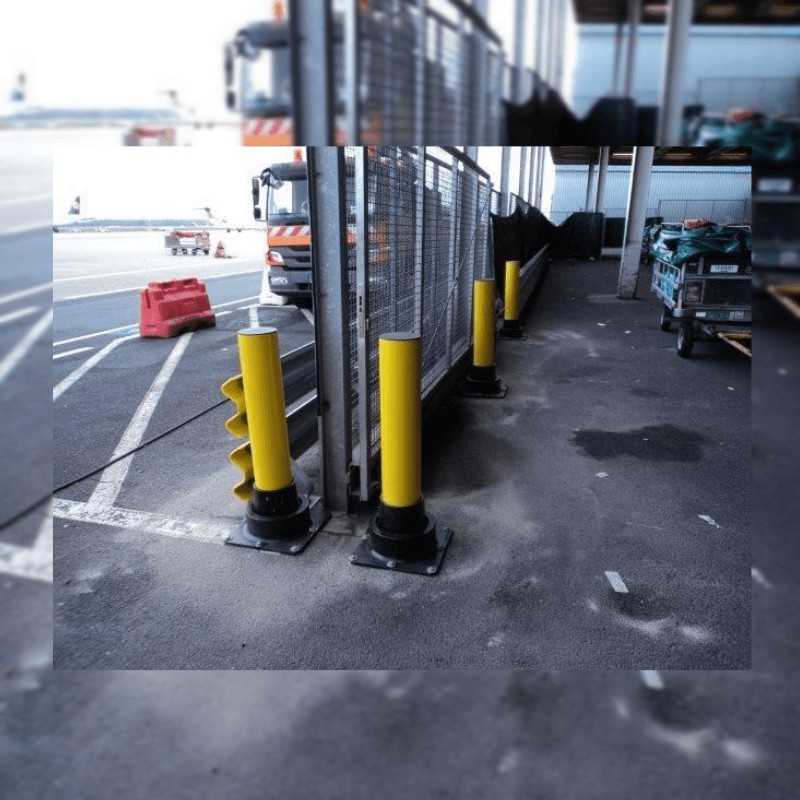 saugo objektą/konstrukciją: Softstop® montuojama tam tikru atstumu nuo saugomo objekto ir smūgio metu linksta tik iki tam tikros ribos. Todėl Softstop® neturi kontakto su objektu/konstrukciją ir garantuoja apsaugą