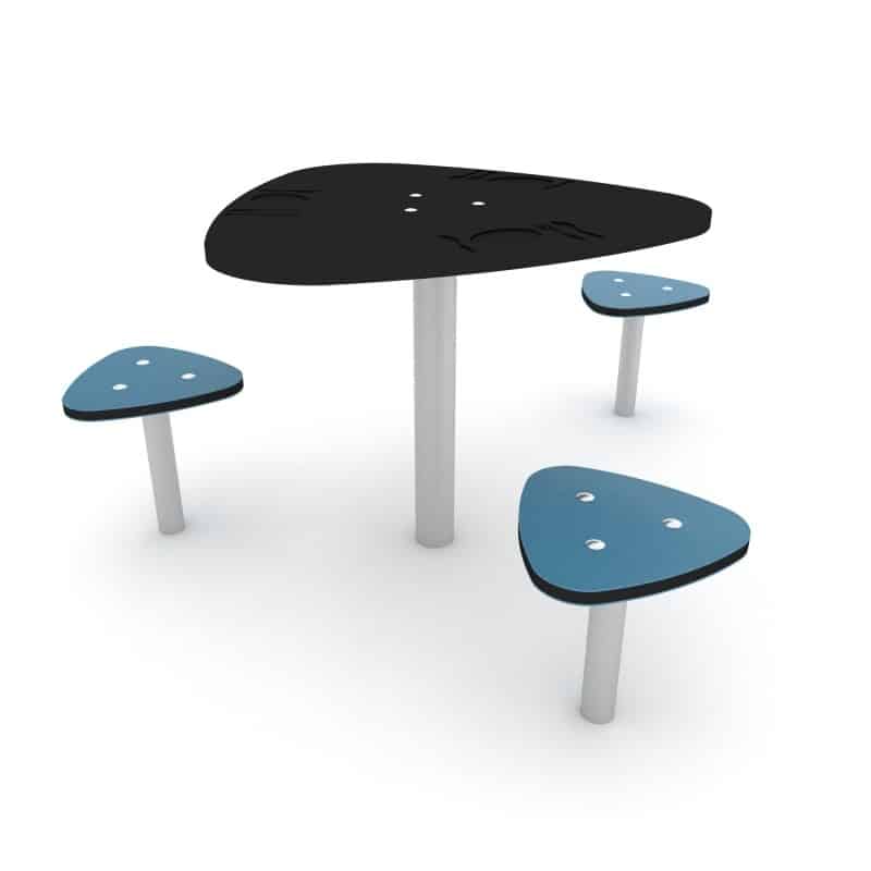 Betoninis šachmatų stalas, pritaikytas žmonėms su judėjimo negalia. 3 kėdės…