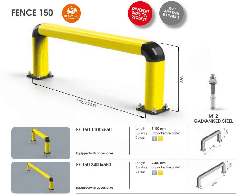 • FE150; 1100×550; 2400×550 mm.