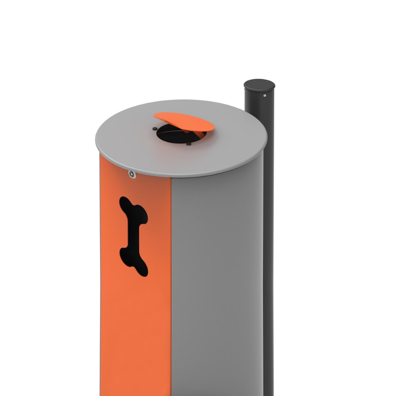 Pakabinama šiukšliadėžė šunų atliekoms su maišelių dozatoriumi, pagaminta iš tvirto milteliniu būdu dažyto plieno. Žaismingi raižiniai leidžia lengvai identifikuoti paskirtį, o šiukšlių dėžės viršuje esantis sandarus dangtelis užtikrina apsaugą nuo lietaus.