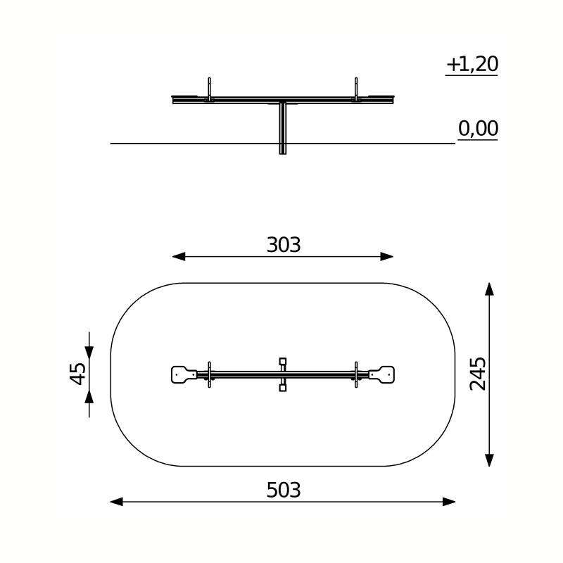 • Saugumo zona: 2,45 x 5,03 m