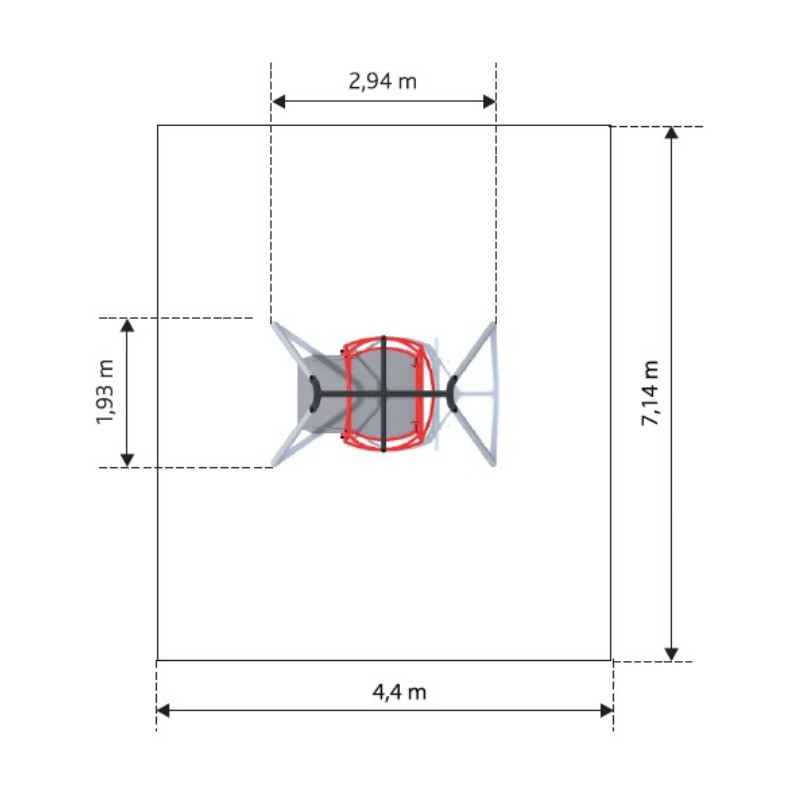 Saugumo zona: 7,14 x 4,4 m