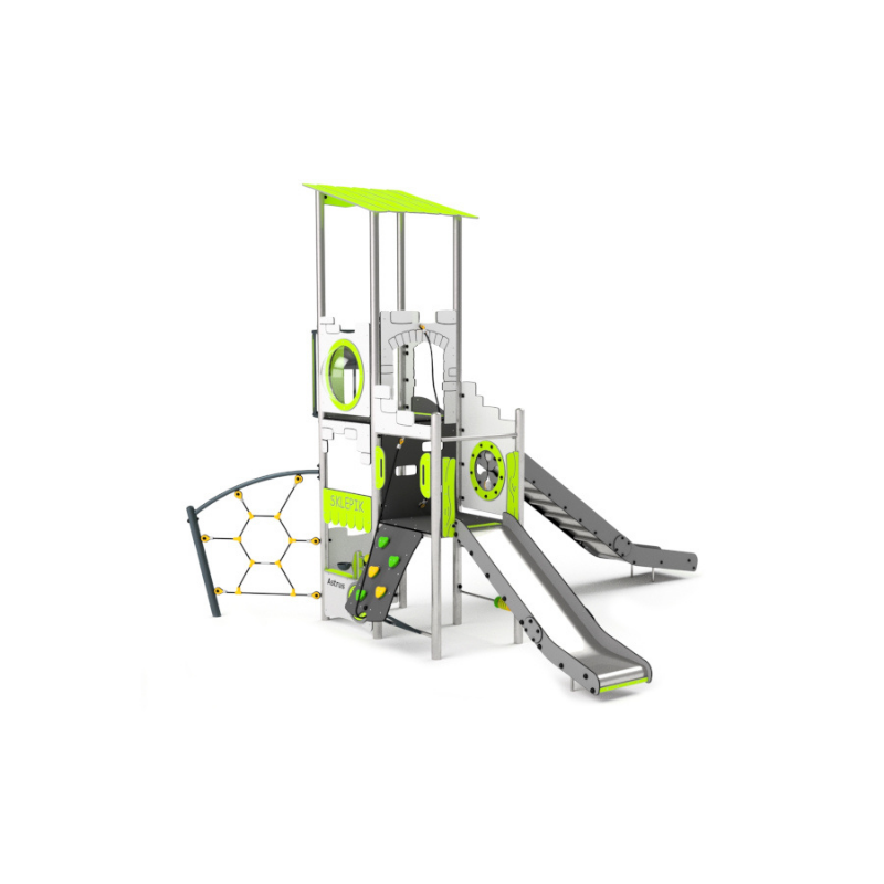 Multifunkcinis žaidimų aikštelės įrenginys, kurį sudaro dvi skirtingų aukščių čiuožyklos su platformomis, mini laipiojimo sienelė ir virvių karstynė. Žaidimų komplekso konstrukcija pagaminta iš cinkuoto plieno, dekoratyviniai elementai iš HDPE ir polikarbonato, virvės sustiprintos plienine šerdimi. Įrenginys atitinka LST EN 1176 standartą, tinka vaikams nuo 3 metų amžiaus.