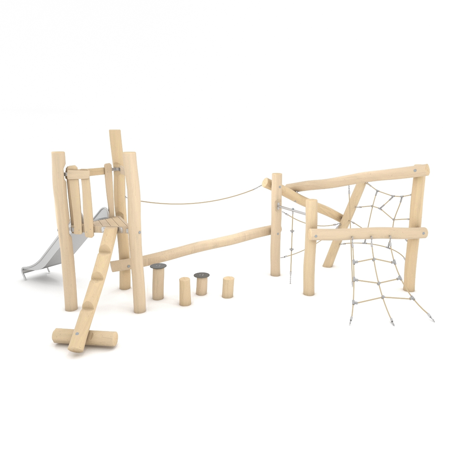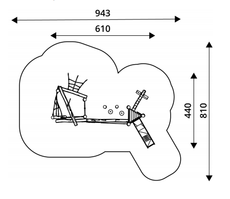 • Pagrindinė žaidimų komplekso konstrukcija pagaminta iš Robinijos – patvarios akacijos medienos (skersmuo ~ 18 cm), atsparios įvairioms oro sąlygoms;