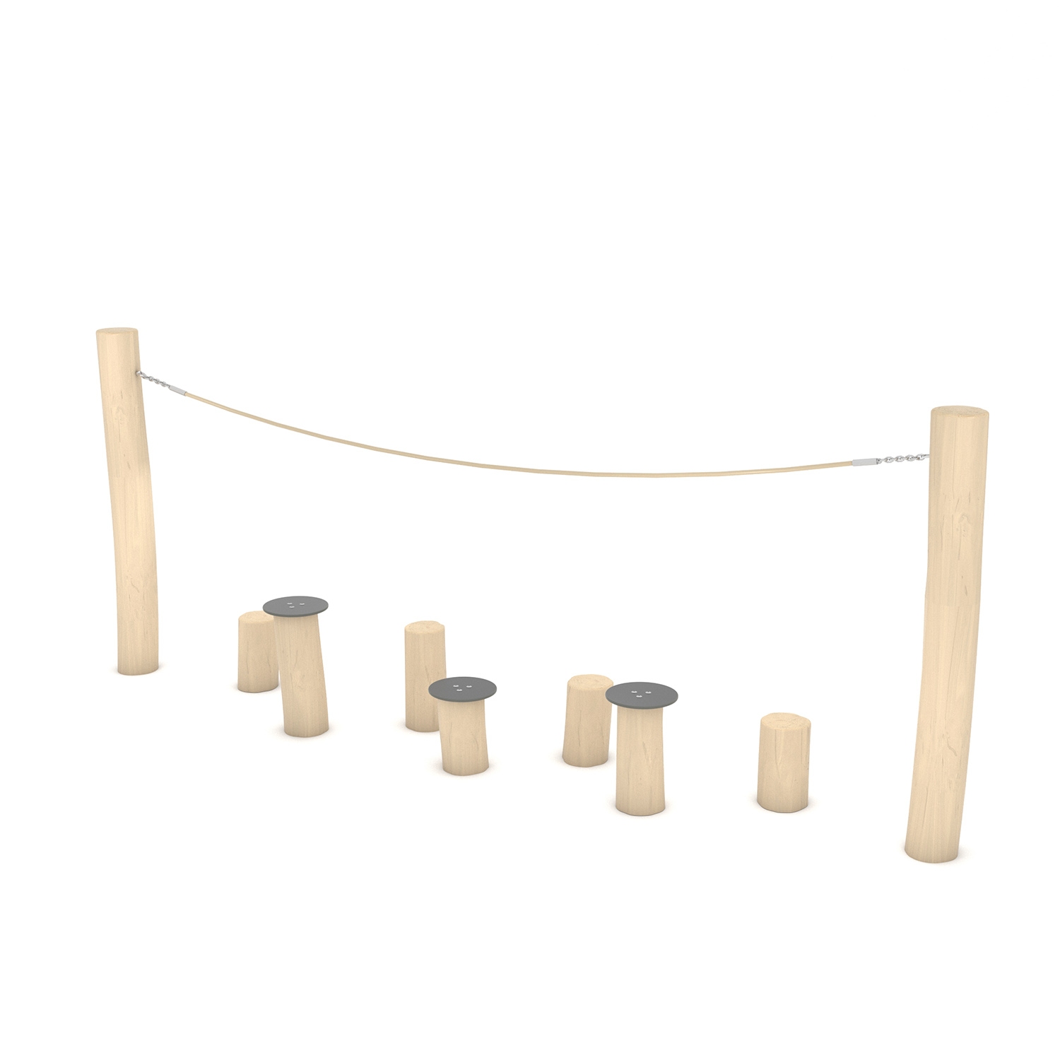 • Pagrindinė žaidimų komplekso konstrukcija pagaminta iš Robinijos – patvarios akacijos medienos (skersmuo ~ 18 cm), atsparios įvairioms oro sąlygoms;