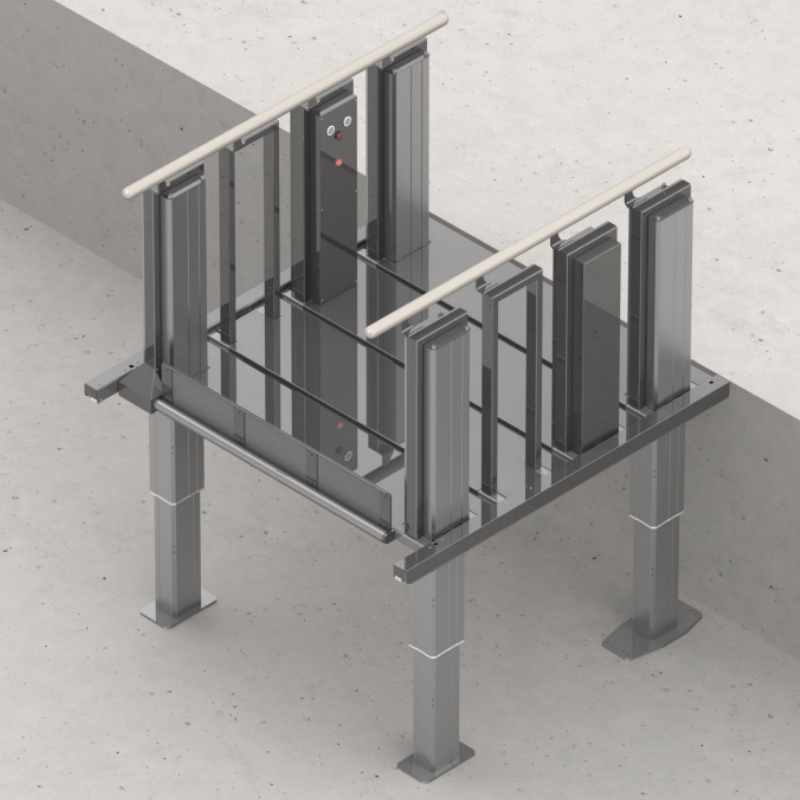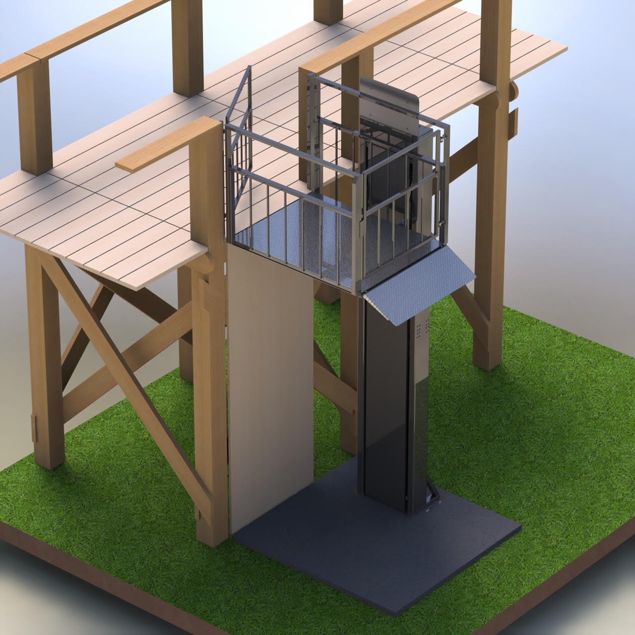 Atviras liftas, skirtas judėjimo negalią turintiems žmonėms. Platforminis keltuvas naudojamas…