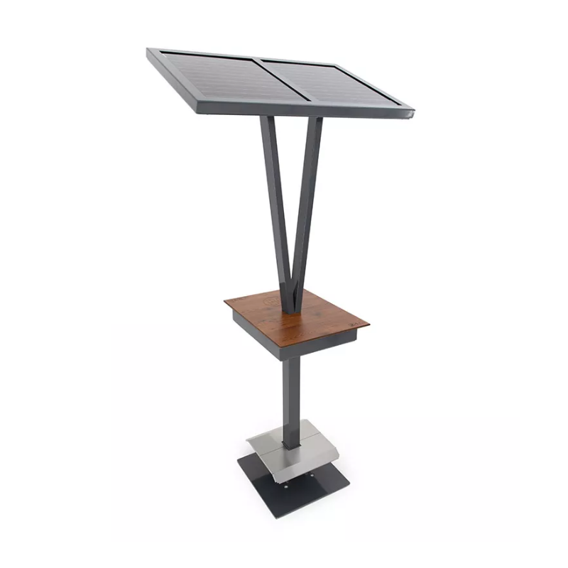 Lauko suoliukas ir paslaugų stotelė, įkraunama saulės energija. Tai dviračių…