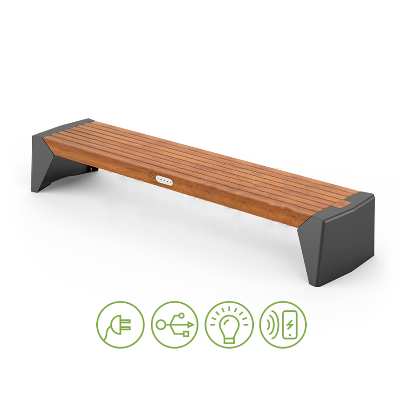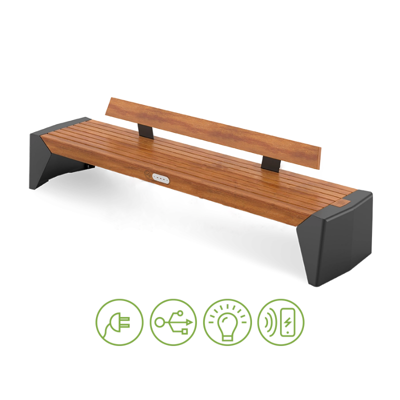 Tvirtos konstrukcijos medinis suoliukas su USB jungtimis ir bevielio įkrovimo…