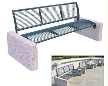 Asimetriškos konstrukcijos betoninis lauko suoliukas su natūralaus granito skaldelės apdaila…