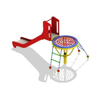 Moderni čiuožyklė su virvinine laipyne ir „lizdo“ tipo aikštele. Čiuožyklė…