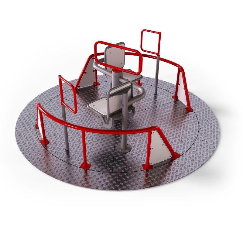 Karuselė pagaminta iš cinkuoto plieno ir pritaikyta žmonėms neįgaliųjų vežimėliuose.…